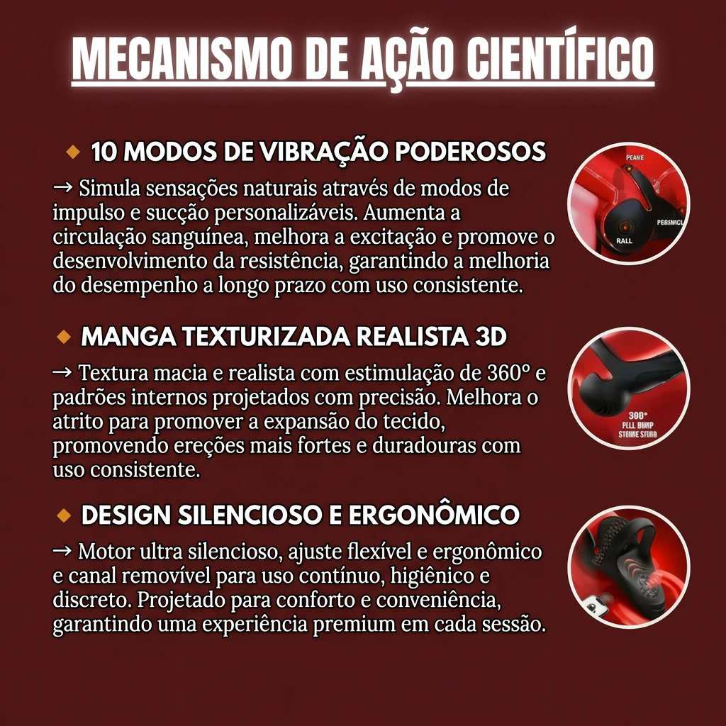 O VigoraTech™ é o sistema 5-em-1 líder em performance masculina que combate a disfunção e a ejaculação precoce com precisão avançada. Através da exclusiva combinação de terapia por ondas de choque e modulação de pulso inteligente, ele oferece um design ergonômico e 100% à prova d'água para resultados reais no conforto de casa.